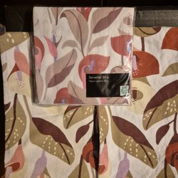 Servetter och kökshandduk med lövmönster