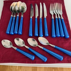 Bestick med blått skaft, vintage
