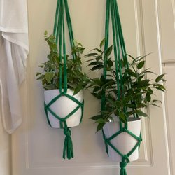 Två Bruna amplar, makramé, plant hanger, 16-20 cm