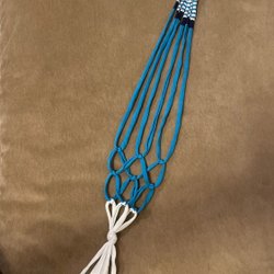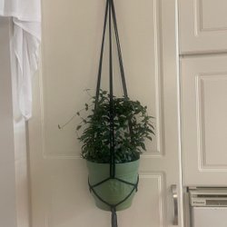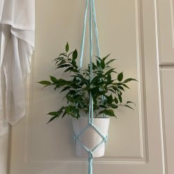 ampel, plant hanger, makrame, ljusblå smårandig 10-12 cm