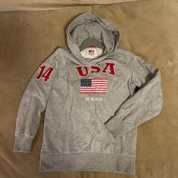 Grå luvtröja, hoddie Stl. 134/140