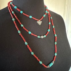 Halsband med turkos, korall och silver pärlor, 925 Nepal