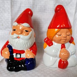 2 ST TOMTAR TOMTEPAR TERRAKOTTA H: 12 - 13 CM