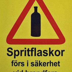 Klistermärke Spritflaskor - förs i säkerhet vid brandfara