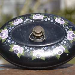 Antik sängvärmare, handmålad med blommor