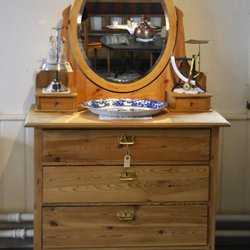 Antik avlutad spegelbyrå med fasettslipad spegel