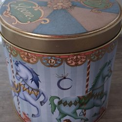 Härlig plåtburk med gammeldags karusellmotiv