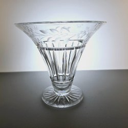 Slipad kristallvas med etsad bladdekor – tidlös elegans i konisk form