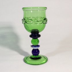 4 höga designglas i koboltblått & smaragdgrönt – elegant handblåst set, 23,5 cm
