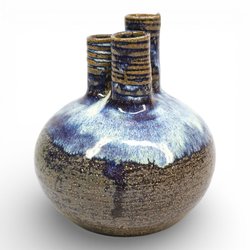 Unik och vacker stengodsvas med tre halsar