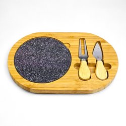 Serveringsbricka i bambu med stenplatta & ostknivar – 28×18 cm