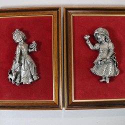 VÄGGRELIEFER, tenn, ett par