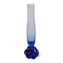 Konstnärlig blå glasvas – 20 cm hög med skulptural fot i optiskt glas