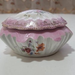 Ljusrosa föremål, kruka, ljusstakar och muffinsform