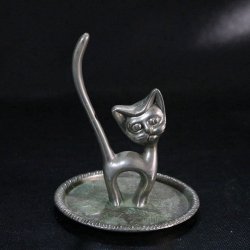 Ringhållare, i form av en katt, troligen nysilver