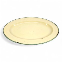 Kockums emaljerat ovalt fat 45 cm – klassisk svensk emalj i creme med grön kant