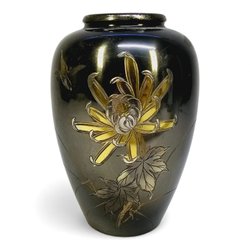 Liten dekorativ glasvas med etsad blomdekor – möjligen japansk märkning – 17,5cm