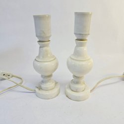 Vintage Marmorlampor – Elegant Par i Vit Marmor, 21 cm