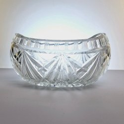 Kristallskål i slipad glasdesign – elegant vintagefat i oval form