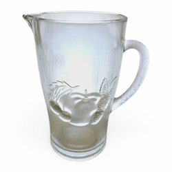 Vintage glaskanna med fruktdekor – frostat pressglas, 21 cm hög