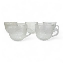 5 st glasade koppar – Arcoroc France i reliefmönstrat glas, 7 cm höga