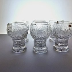 6st Isliknande glas i strukturerat klarglas – 7,5 cm höga, med etikett