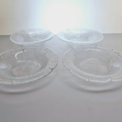 4 st pressglasfat med frostad reliefdekor – vintage i Art Deco-stil (Ø 18 cm)
