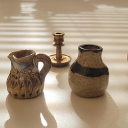 Miniatur vaser, kannor ljusstake i mässing