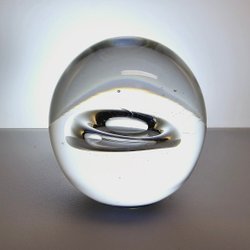 Signerad glaskula från Studio Åhus – Skulpturalt konstglas med optisk effekt