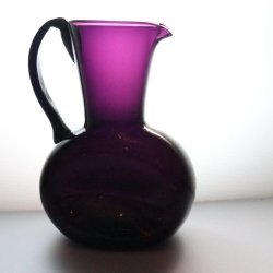 Kanna, llila glas med intryckta sidor