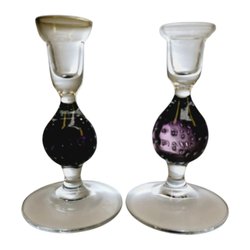 Unika glasljusstakar med bubblor & lila inslag – handgjorda, 14 cm