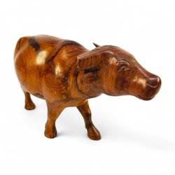 Handskuren träskulptur – Buffel i massivt trä, folkart, vintage