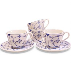 Klassiska blåvita kaffekoppar i lökmönster – tidlös elegans i porslin (6 delar)