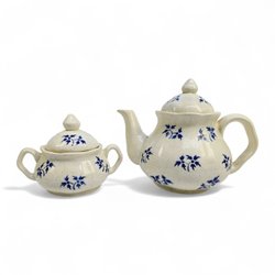 Tysk tekanna med sockerskål – Handmålat vintage-set i blåblommig dekor