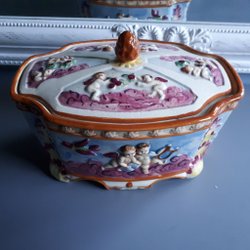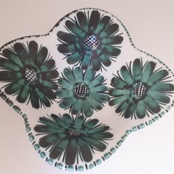 Äldre, unik handgjord skål i porslin med blommotiv, handmade in norway