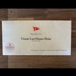 Titanic – Sista Middagen 1912 (Replika av Första Klassens meny) utrop 1 kr