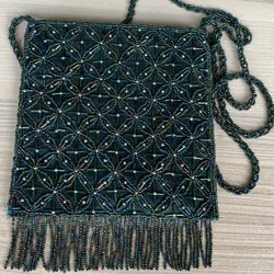 Grön väska med pärlbroderi, aftonväska