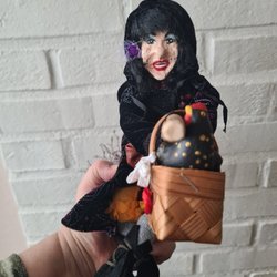 Hängande Påskkärring/häxa på kvast med korg