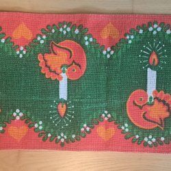 Retro Julbordslöpare med ljus och fågelmotiv av Ulla Margaret Littorin
