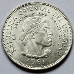 Uruguay 10 Pesos - 1961 SILVER