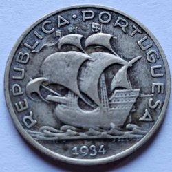 Portugisisk 5 Escudos från 1934 SILVER