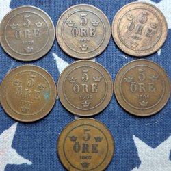 5 öre 1878, 1883, 1884, 1901, 1904, 1905 & 1907!