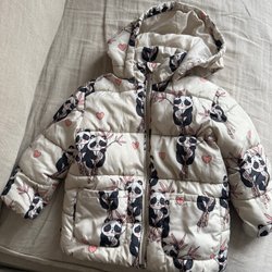 Vit, svart, rosa puffjacka storlek 104