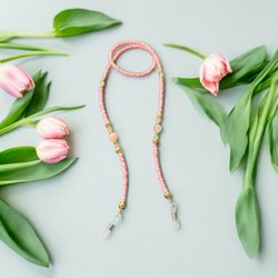 Glasögonkedja med rosa pärlor