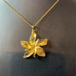 Guldfärgat halsband med blomsterhänge