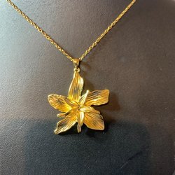 Guldfärgat halsband med blomsterhänge