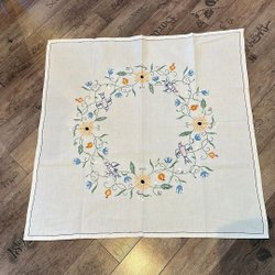 Duk med broderade blommor och virkad kant