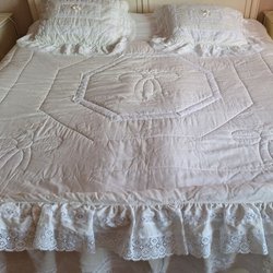 Blå dubbelsäng överkast o 2 kuddfodral med dekorativt mönster