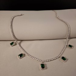 Smaragdgrönt dropphalsband med tennischoker och CZ-kristall, 40 cm justerbar