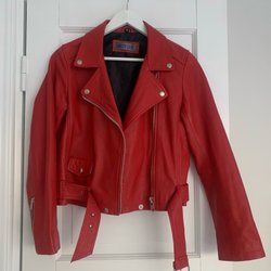 Meotine röd skinnjacka, storlek S 100% lammskinn
